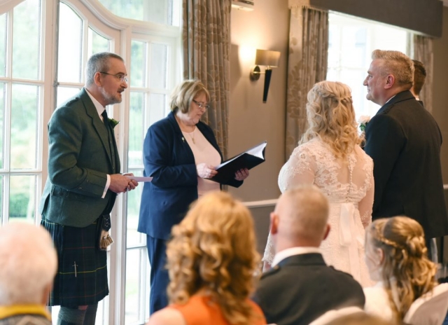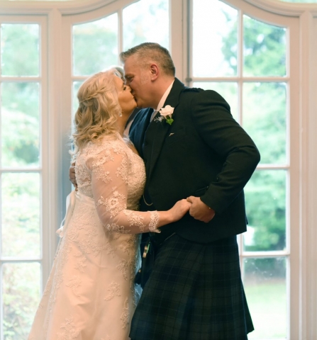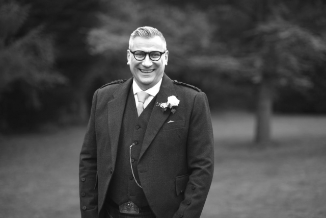As we waited for the bride’s arrival, we shot some photos of Dean and his children. Dressed in matching kilts, he and his best man were eager to get the show on the road. Dean even took a few selfies at the top of the aisle! Catherine and Dean said their ‘I dos’ in front of close family and friends. In a room adorned with candles and silver. Notably, the bride looked stunning in her white lace dress. Additionally, the groom could not contain his excitement, and his joy is really shines through in the photographs!