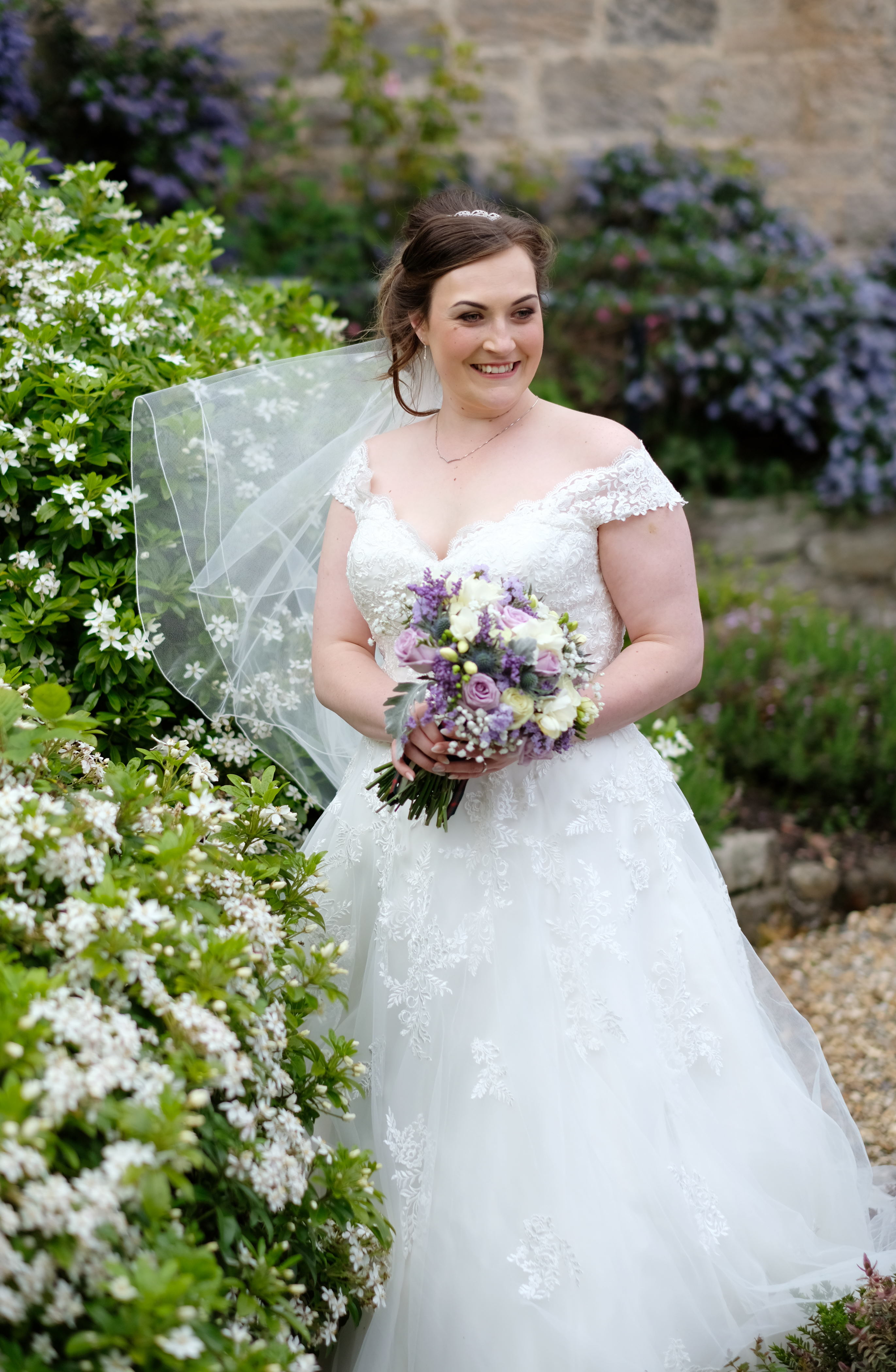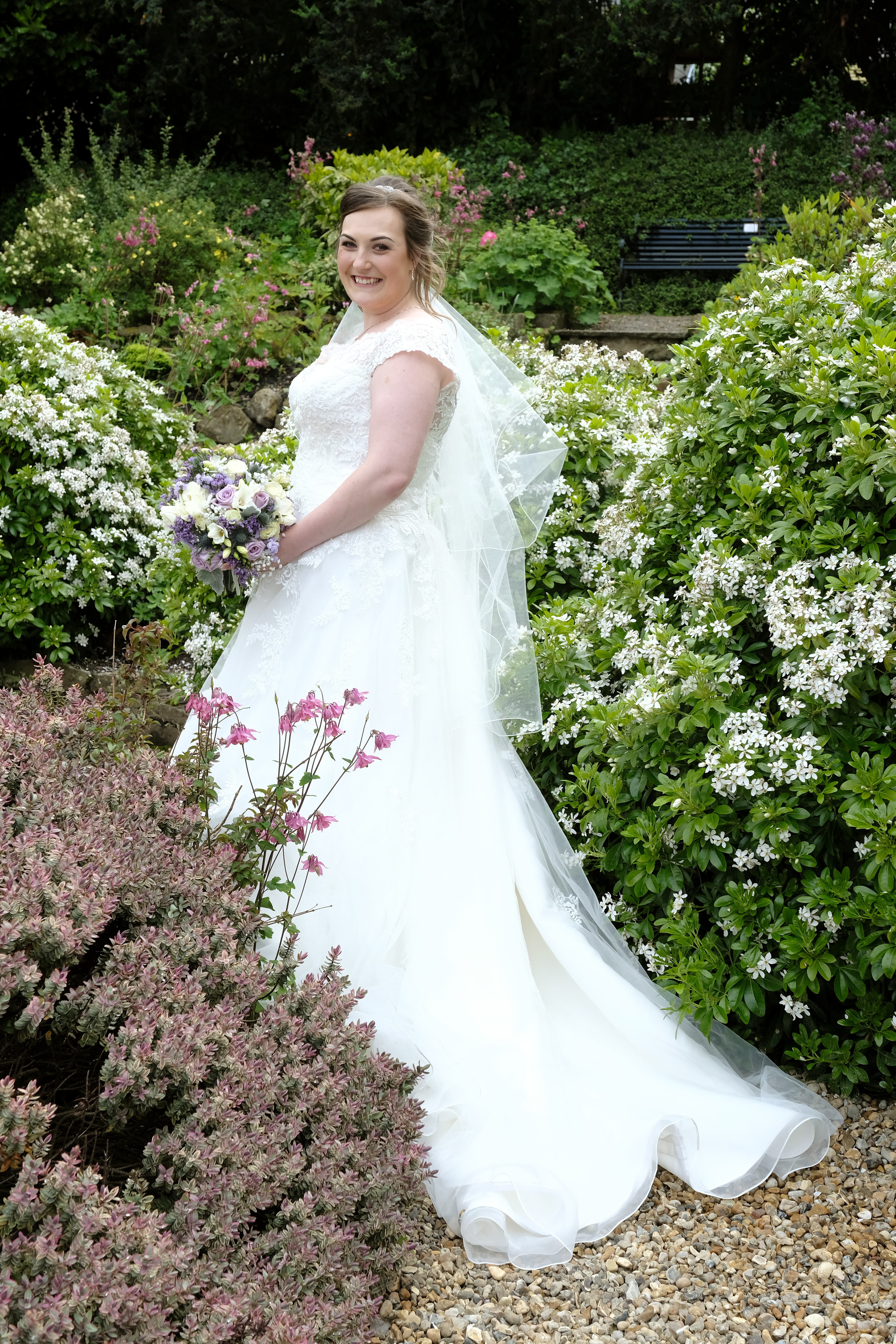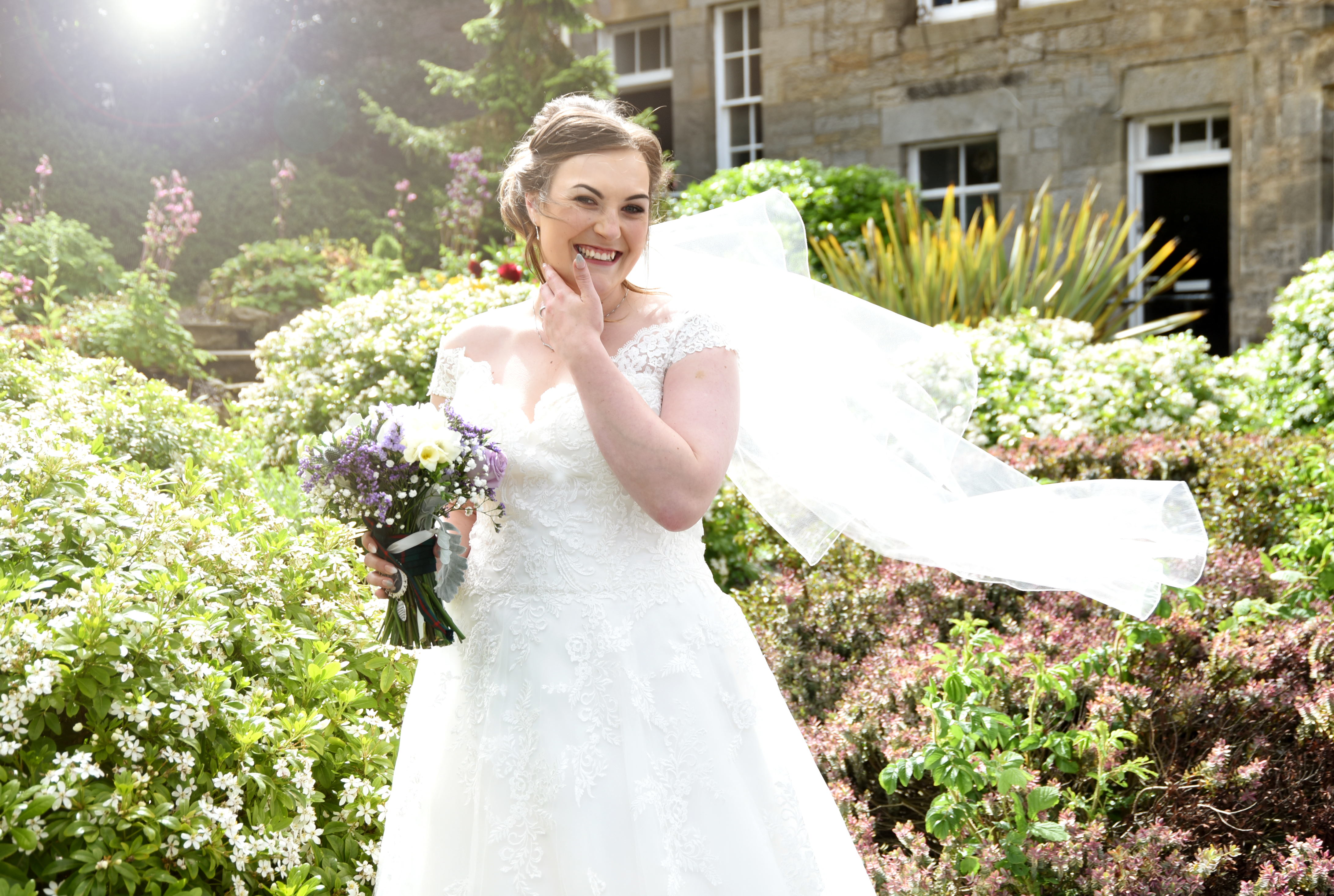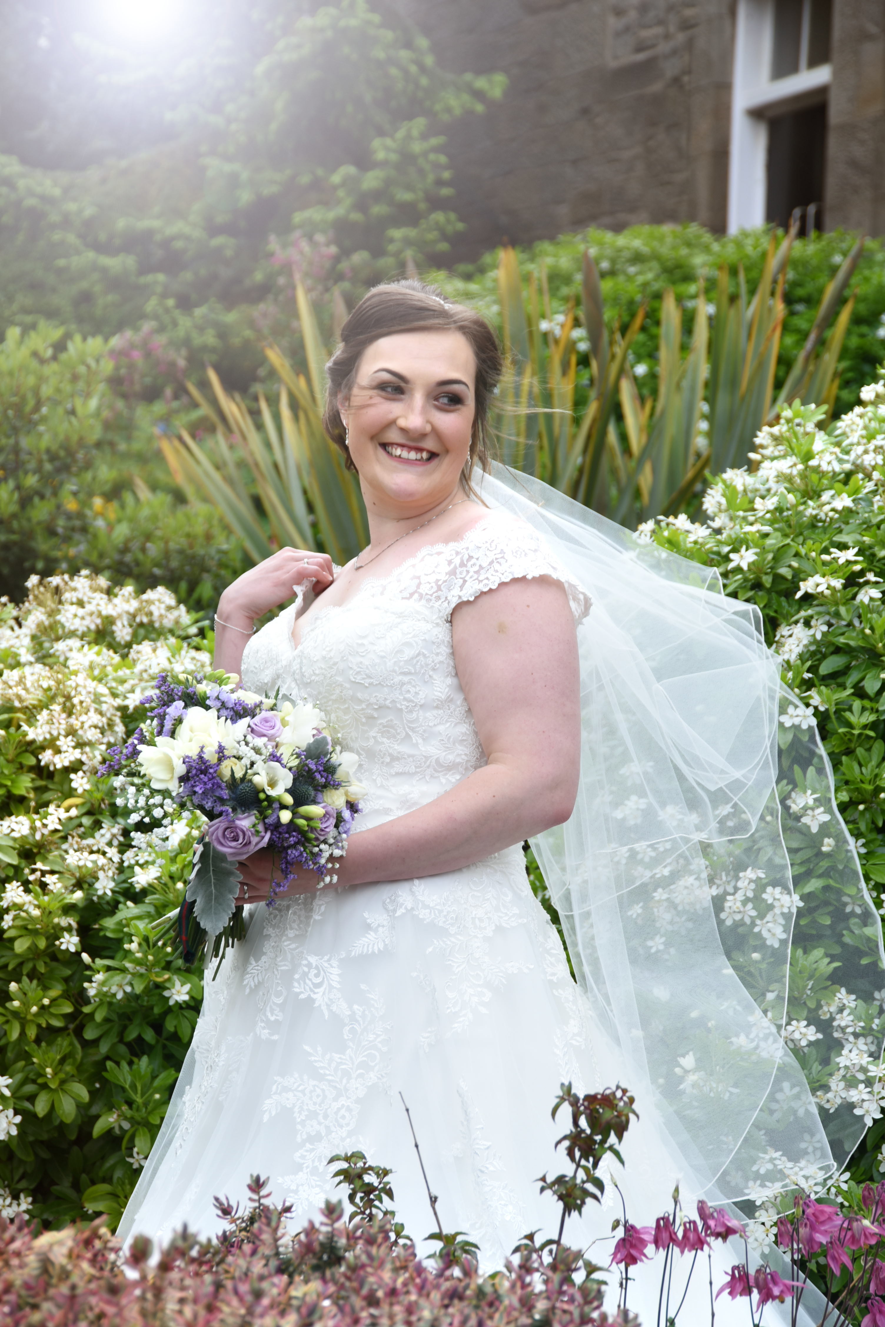 The ceremony was a happy time, with plenty of laughter and personal touches. The couple were blessed with sunshine for their wedding day. South Queensferry provides a variety of unique backdrops for photographs, including the bridges, beaches and these gardens. The couple posed together, and were later joined by their family and friends.