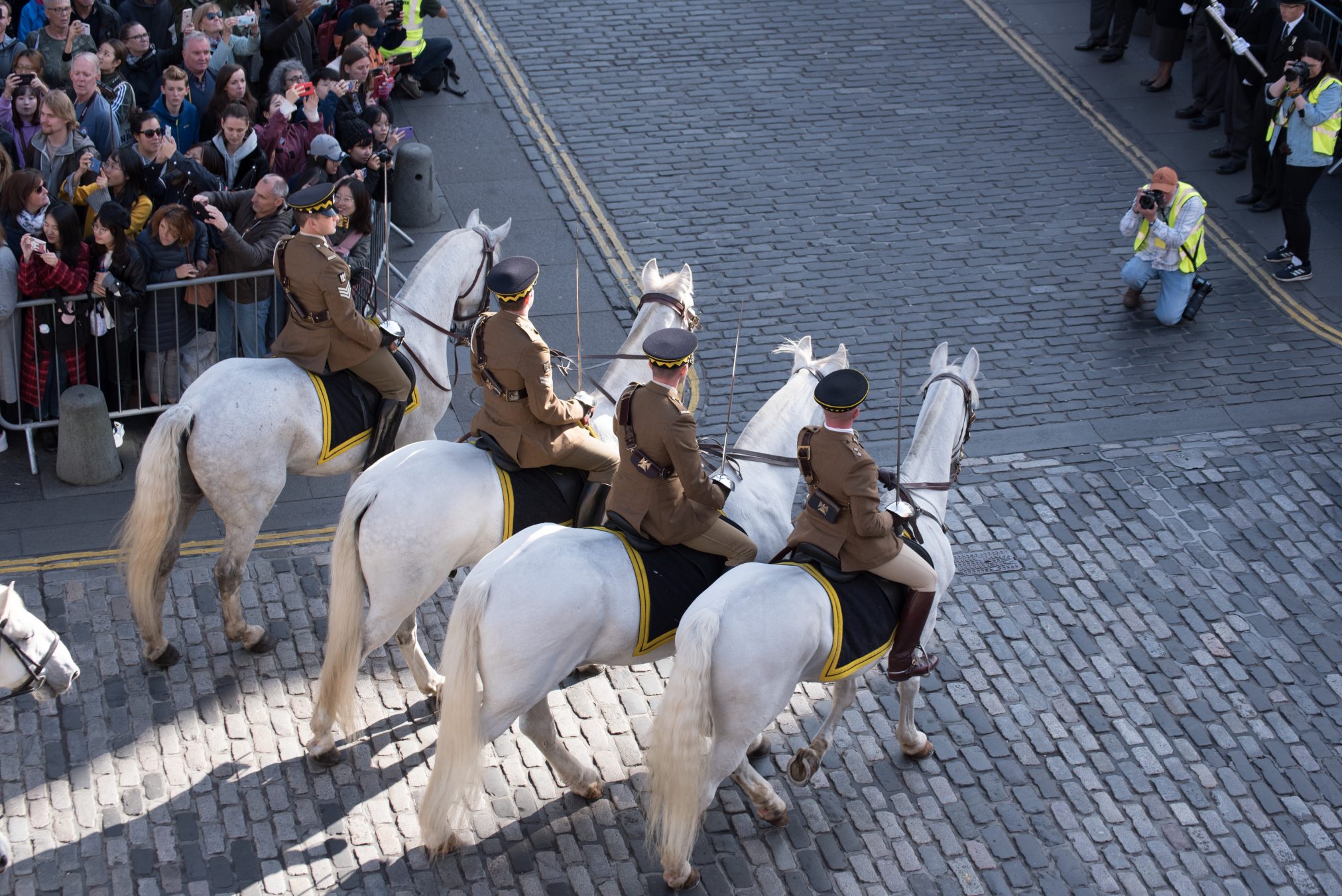 The horses and the ceremony attract large crowds from Edinburgh and afar. The whole event is commentated by ‘the voice of the Tattoo’ himself, Alasdair Hutton O.B.E and musically accompanied by Pipe Bands.