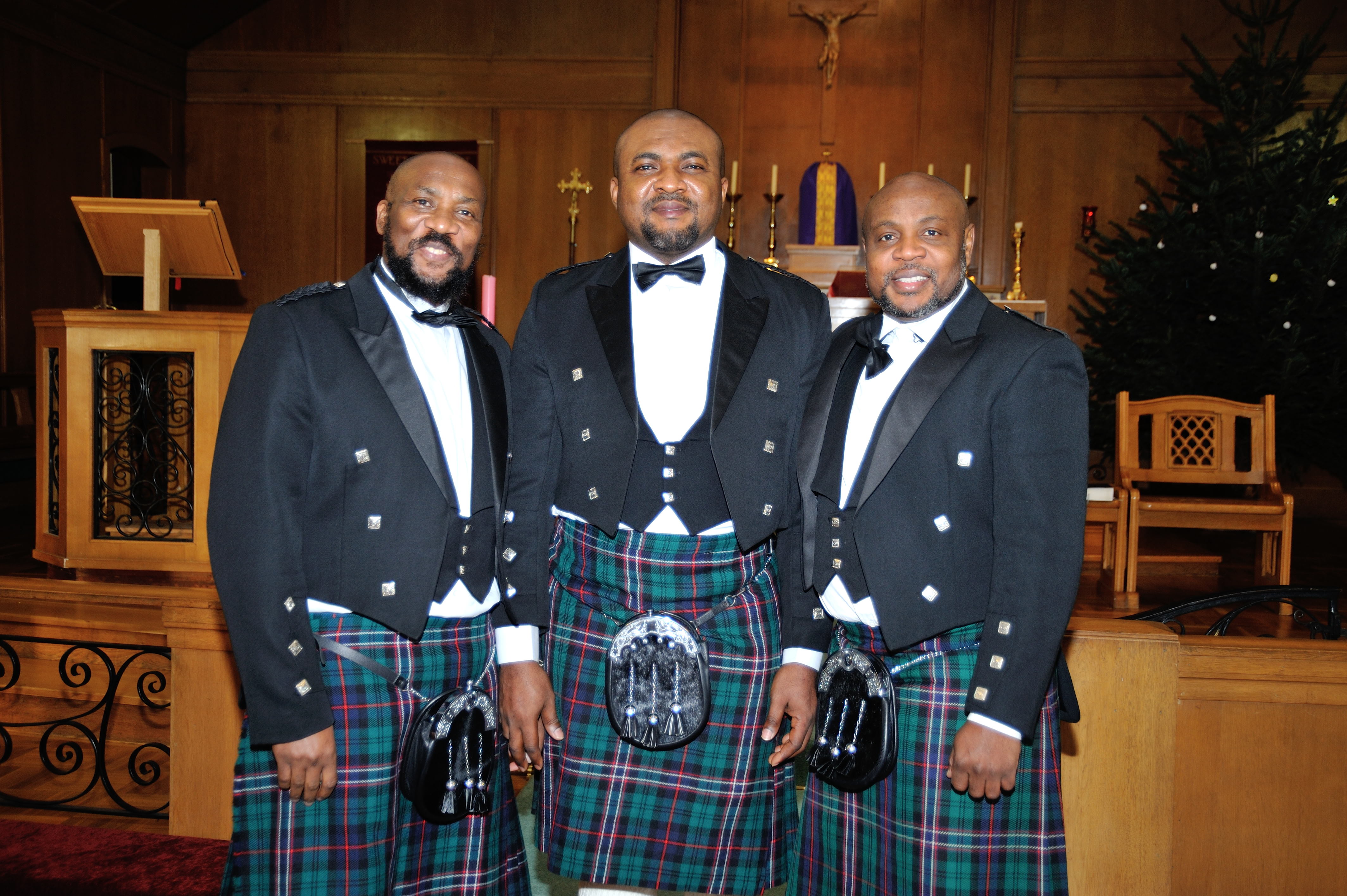Sussan and Emeka said their vows in front of family and friends. After the ceremony, the couple and their guests posed for photographs. There was a rare glimpse of Scottish sunshine on the day, which made up for the slight wind. We were just very grateful for the lack of rain! Additionally, the married couple and their guests braved the December temperatures for some photographs outside the church. This was done before the wedding in order to to make the most out of the minimal light at this time of year. Afterwards at the reception in the church hall, the bride arrived in a beautiful second dress, ready for the dancing!